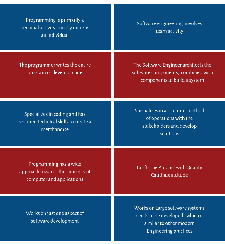 Besides knowing the major differences between Software Engineering and Computer Programming, both the job-role serve to be a better choice for the personnel who are striving to become professionals with huge career opportunity.
